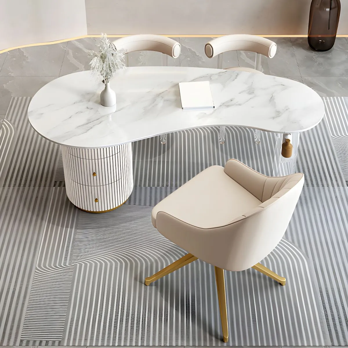 The Alexis Home Office Desk is a versatile and elegant piece of furniture that can transform your home into a productive workspace. Designed with both style and functionality in mind, it offers ample workspace and storage solutions. Here are some of its key features: