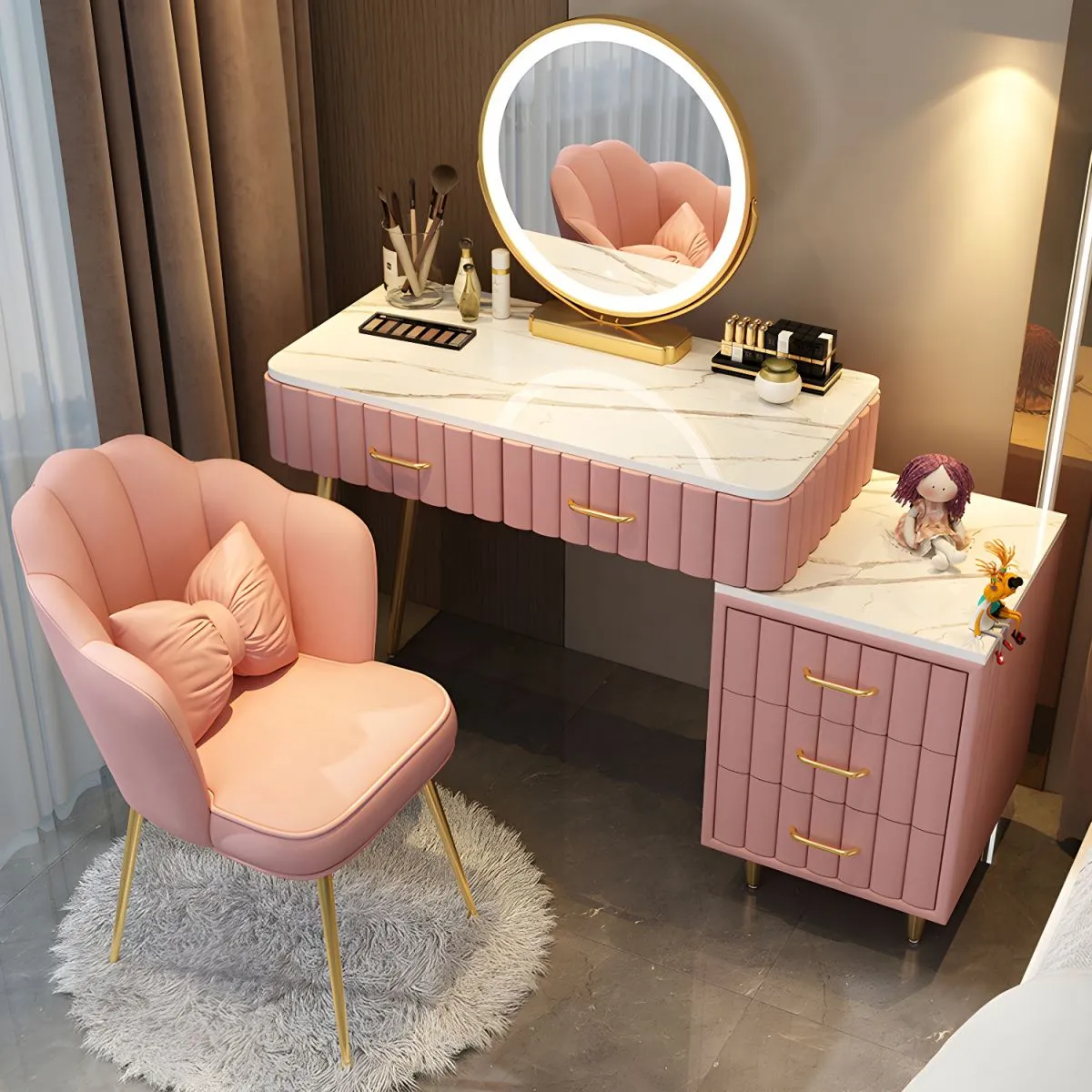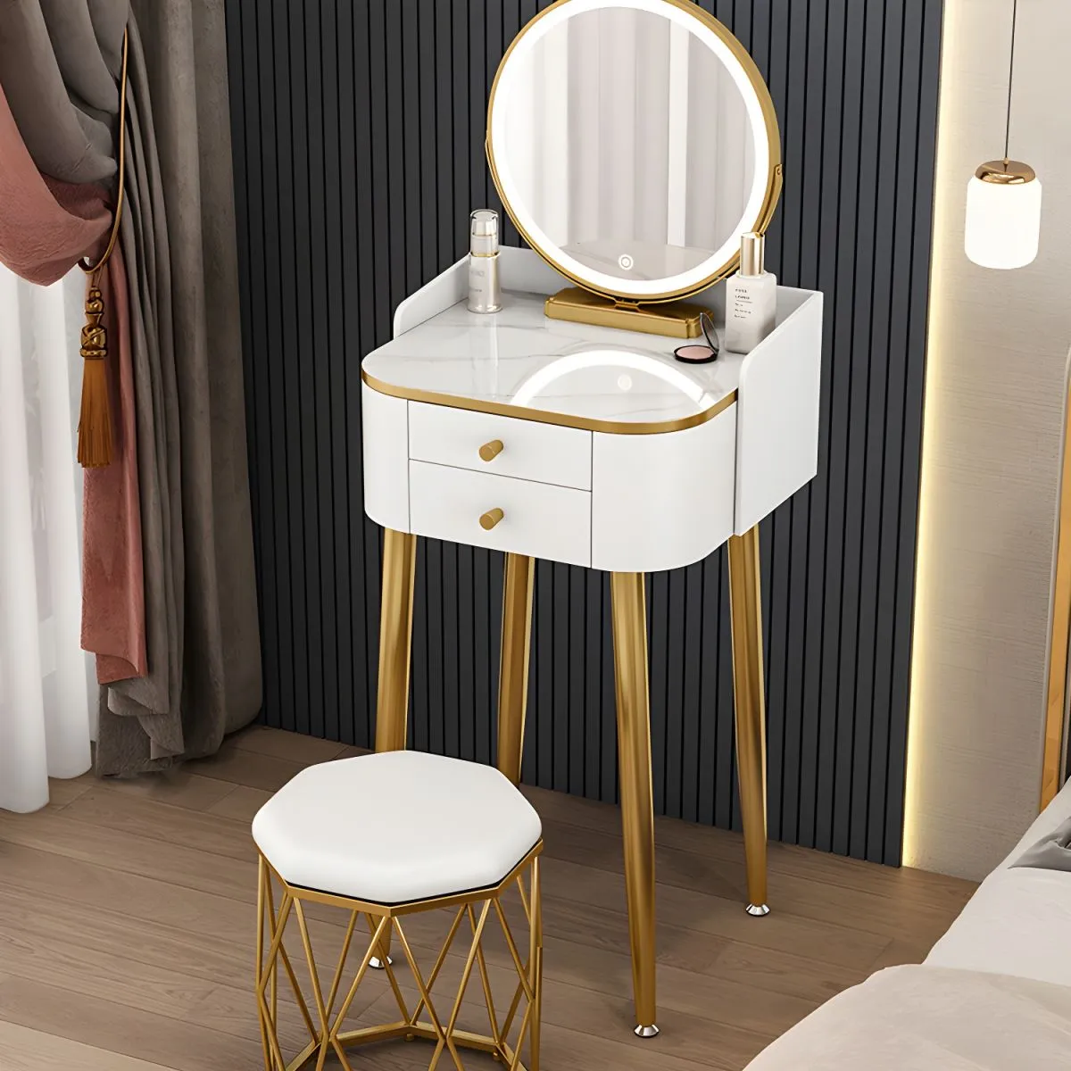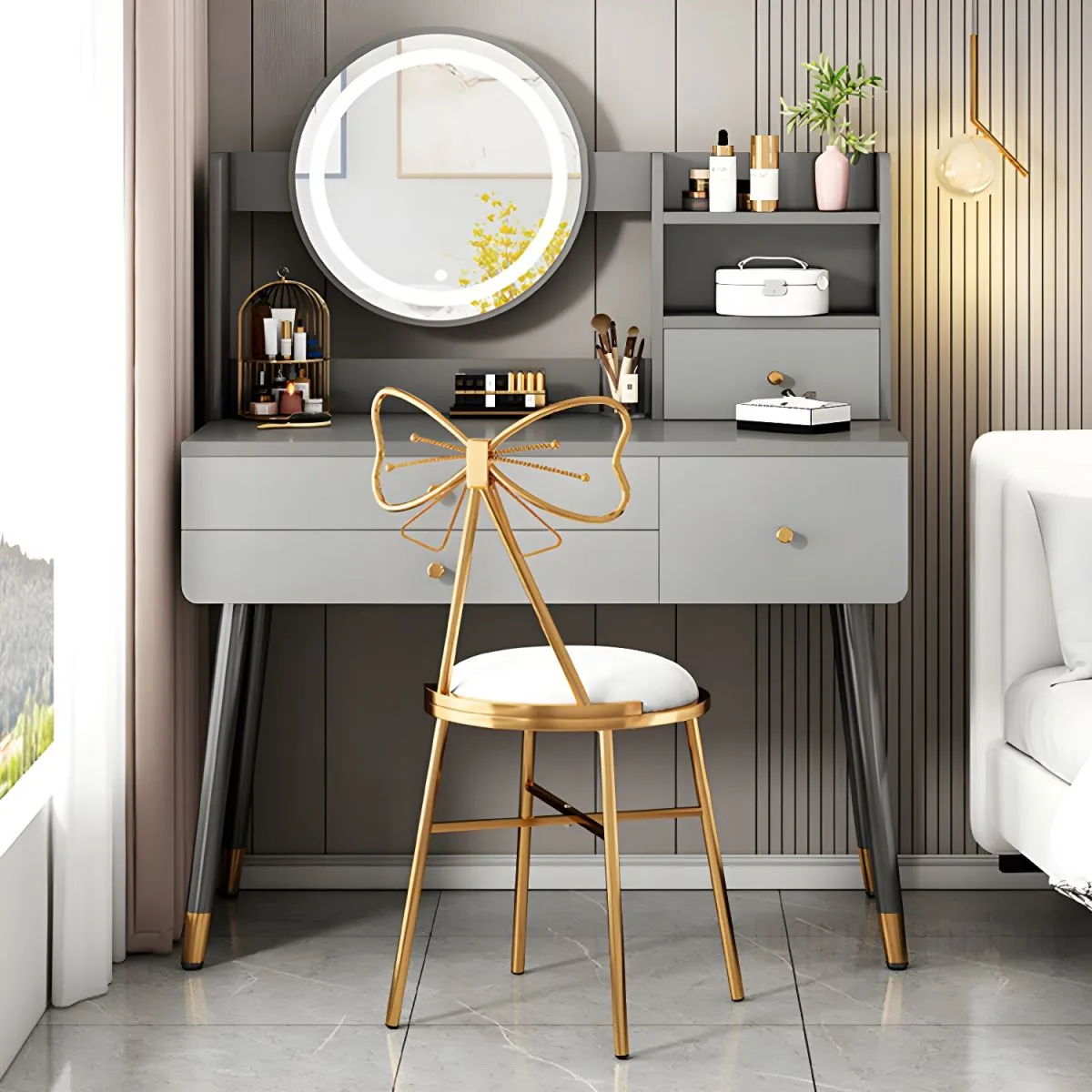 Many dressing tables come with a matching stool or chair, providing a comfortable seating option for your beauty routine.