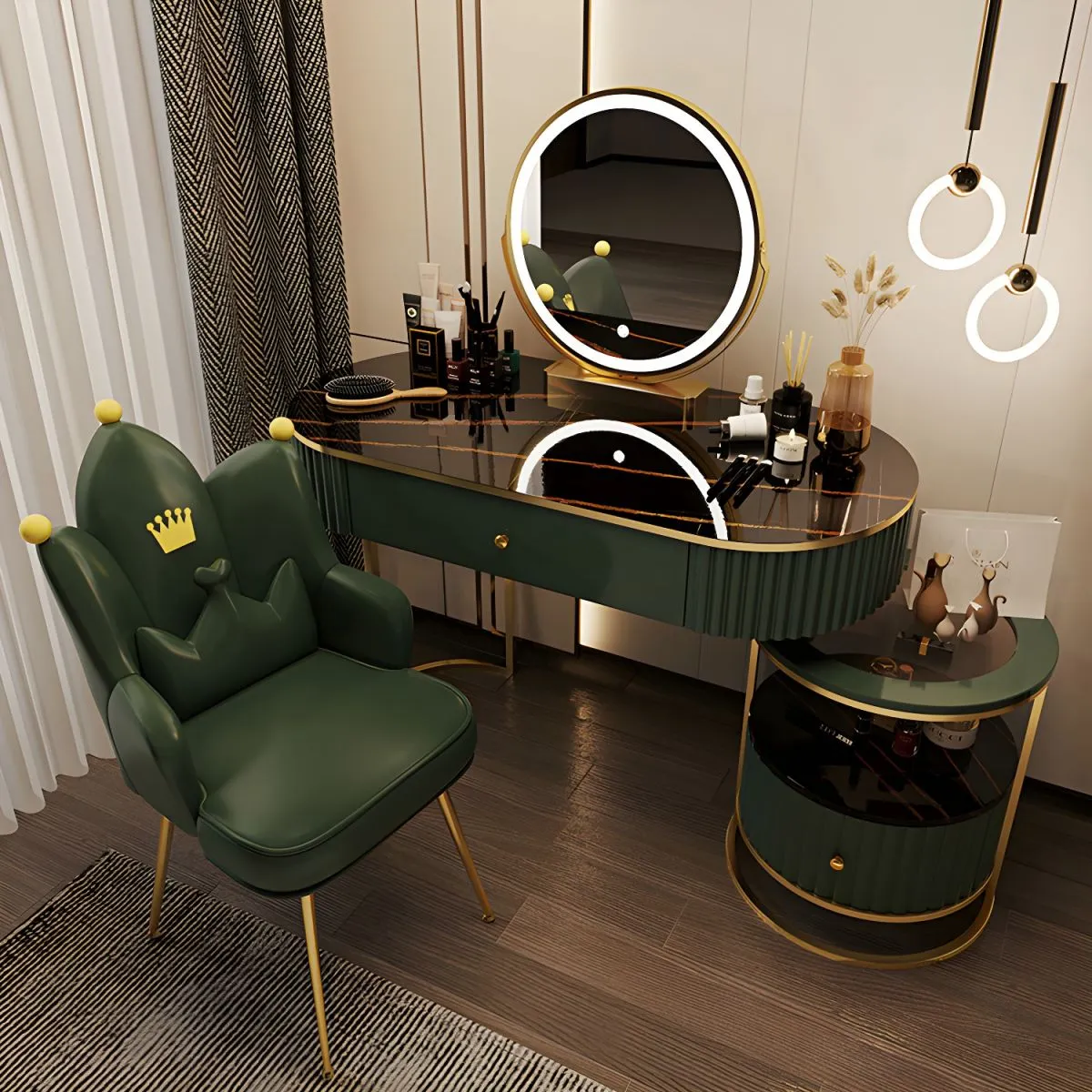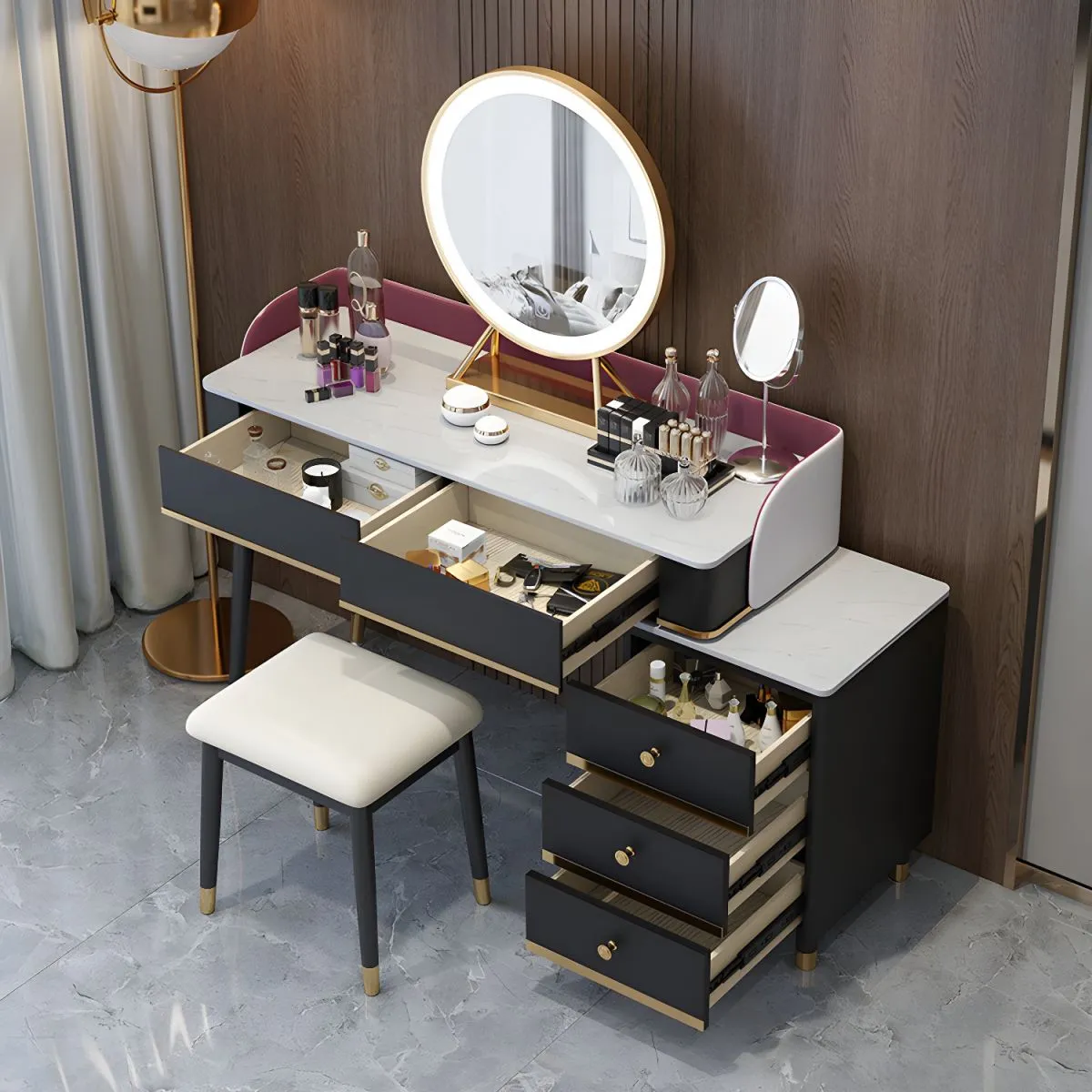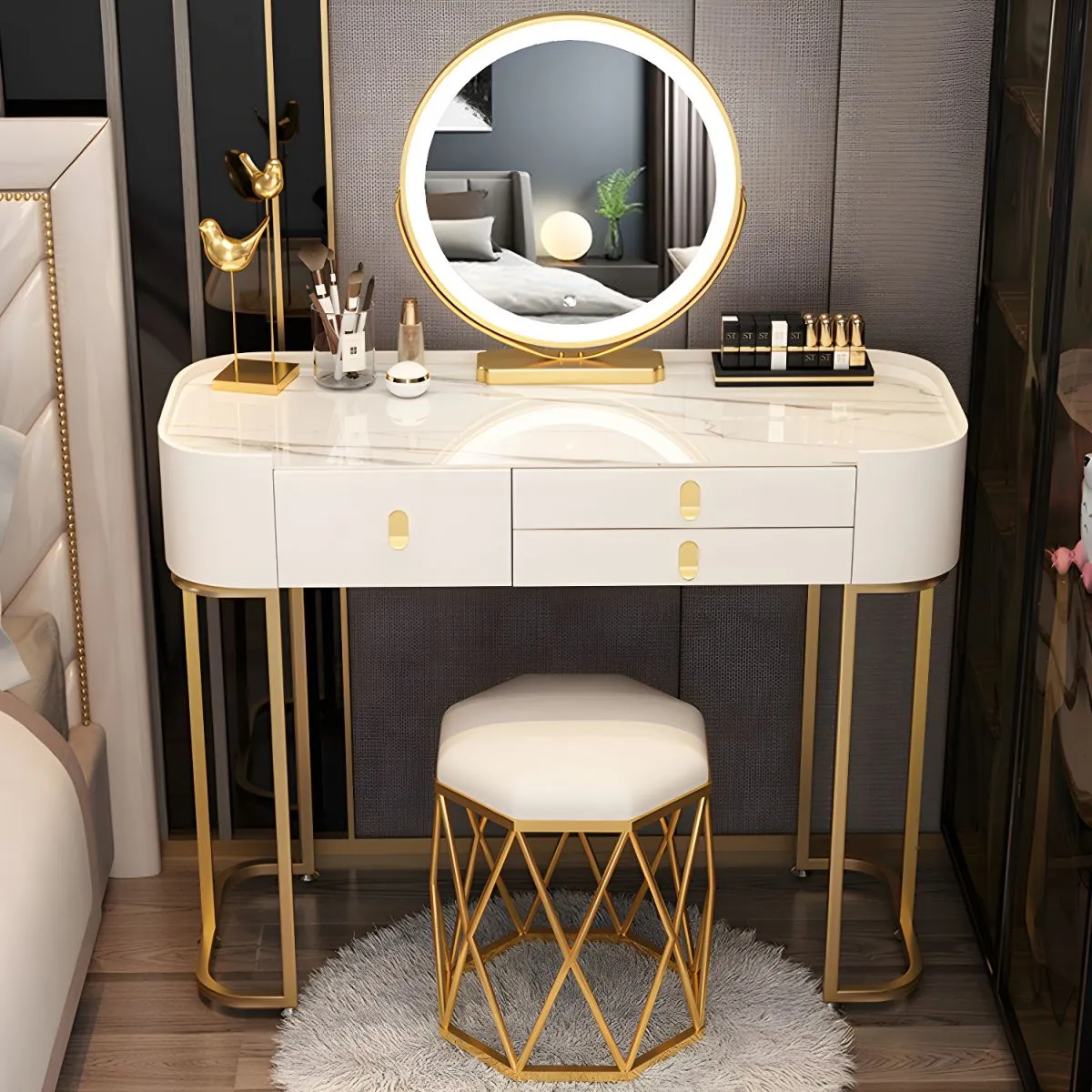 Many dressing tables come with a matching stool or chair, providing a comfortable seating option for your beauty routine.