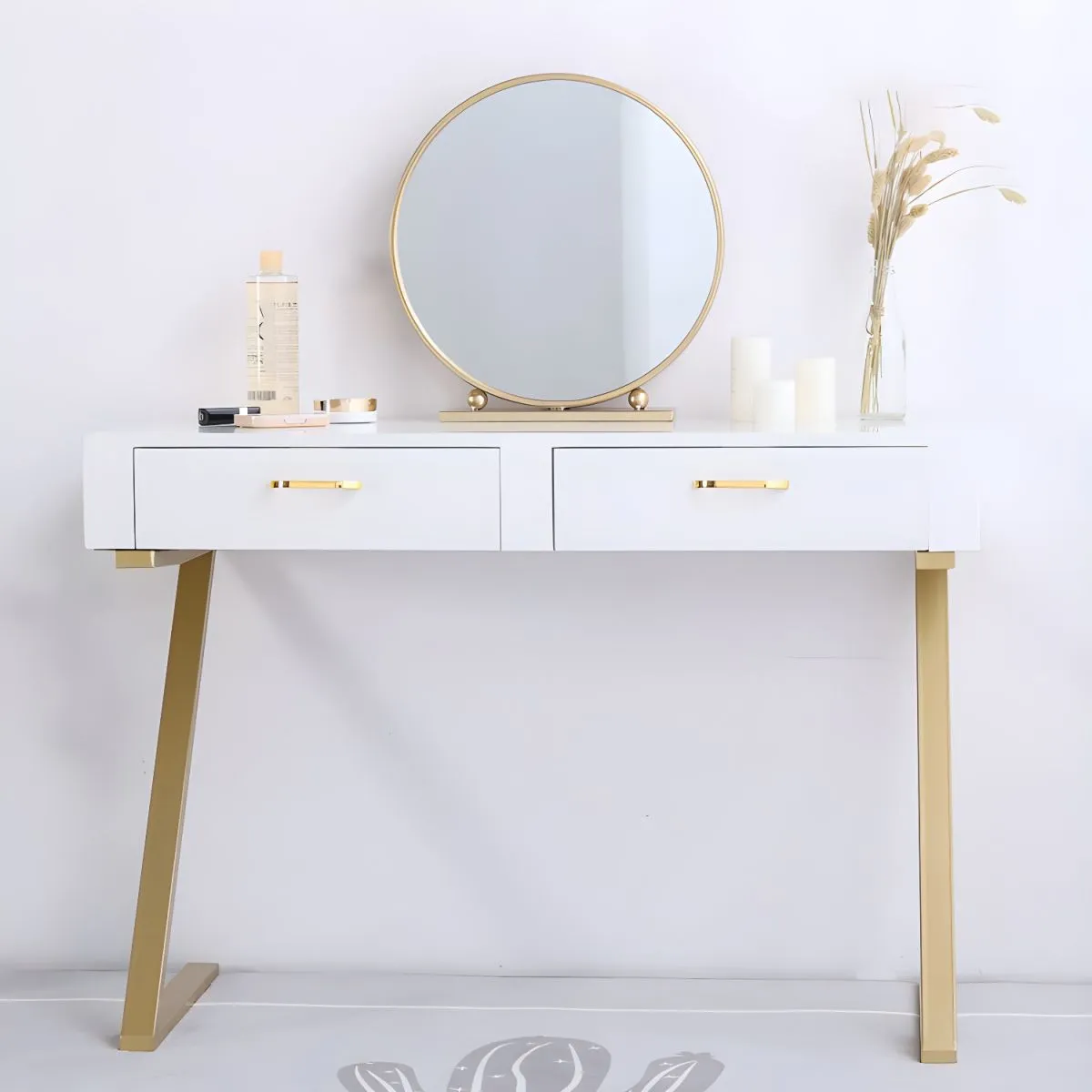 Drawers and shelves provide plenty of room for storing makeup, jewelry, skincare products, and other accessories.